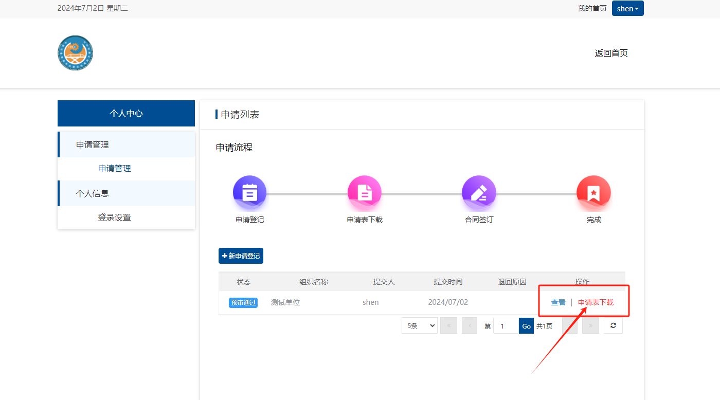 如管理员核查通过,即可进行下步操作【申请表下载】;
